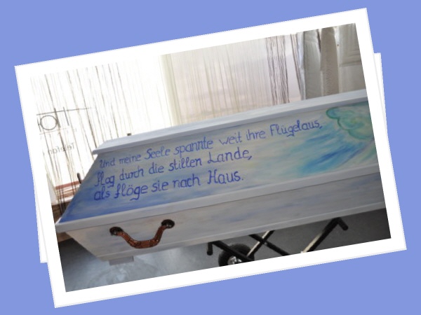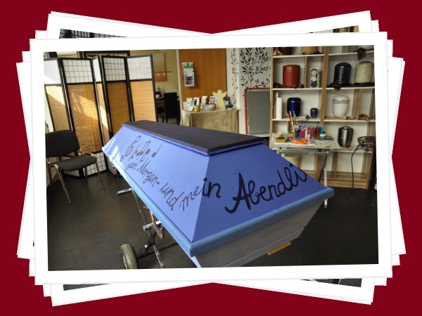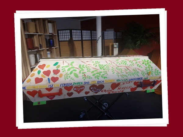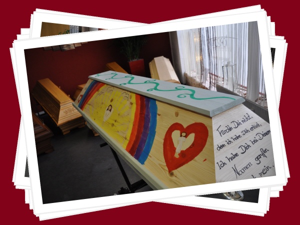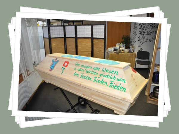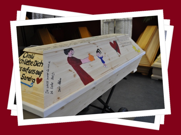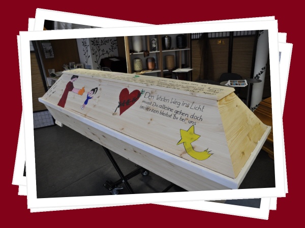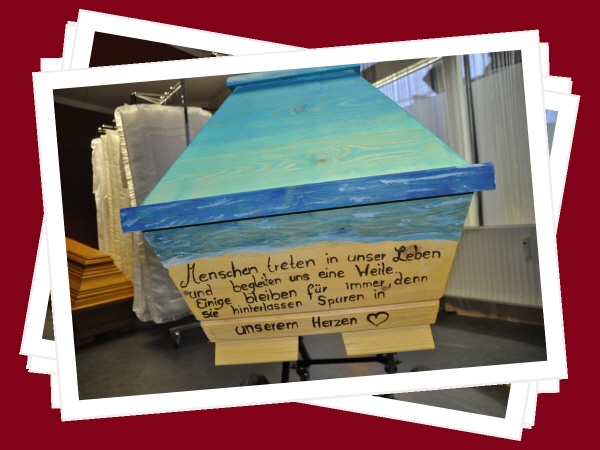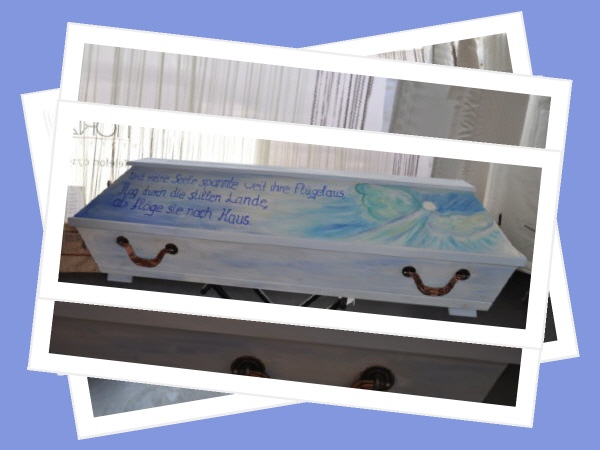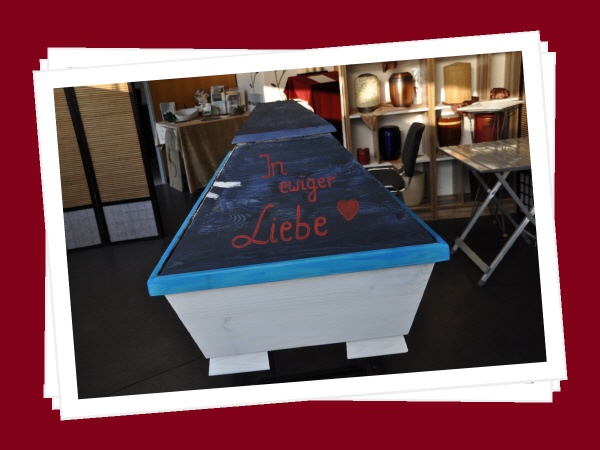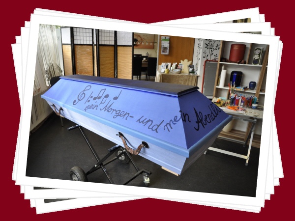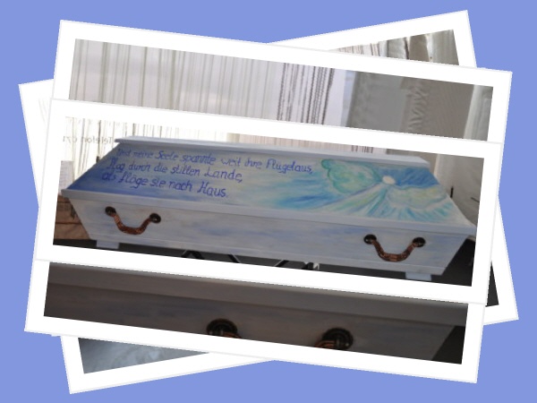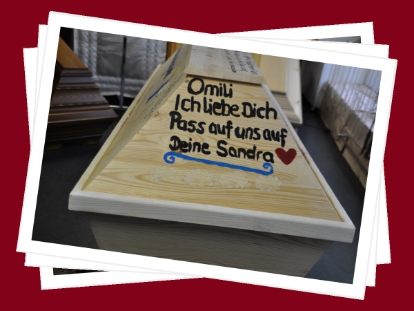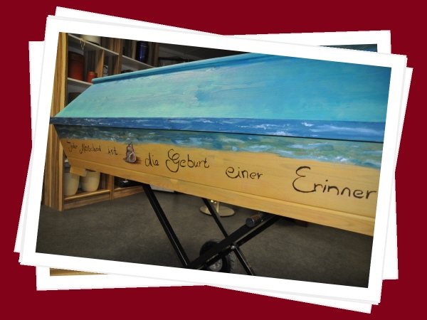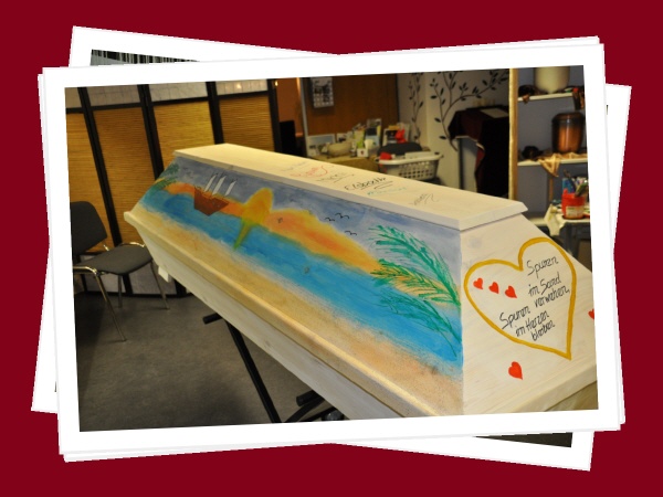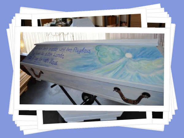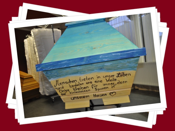 Trauerarbeit und Trauerverarbeitung ist eines unserer großen Hauptaugenmerke. Um nach einem schmerzhaften Verlust nicht in die Schockstarre zu verfallen und direkt in die Trauerverarbeitung zu kommen, bieten wir bei uns die Sargbemalung an.