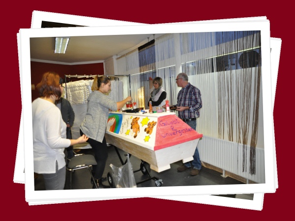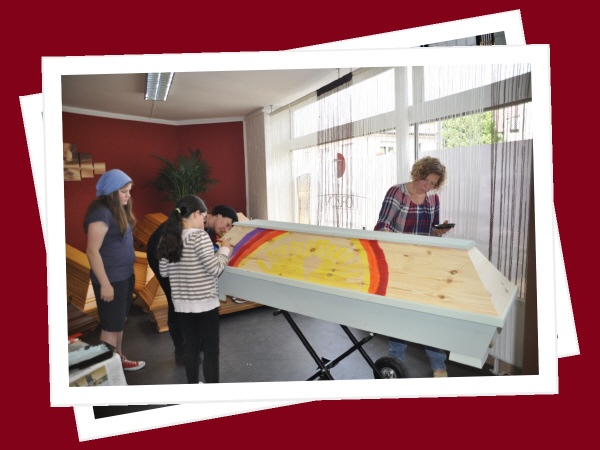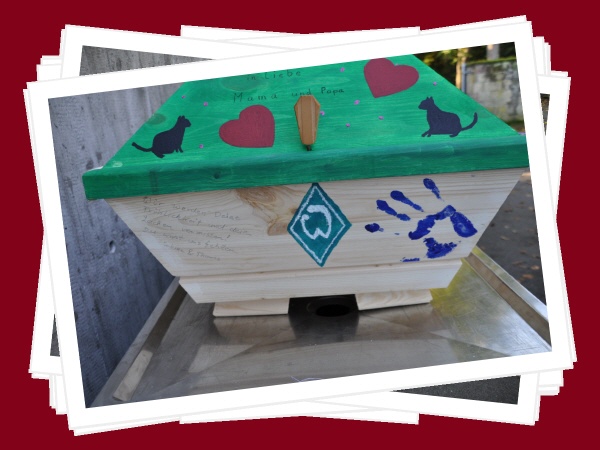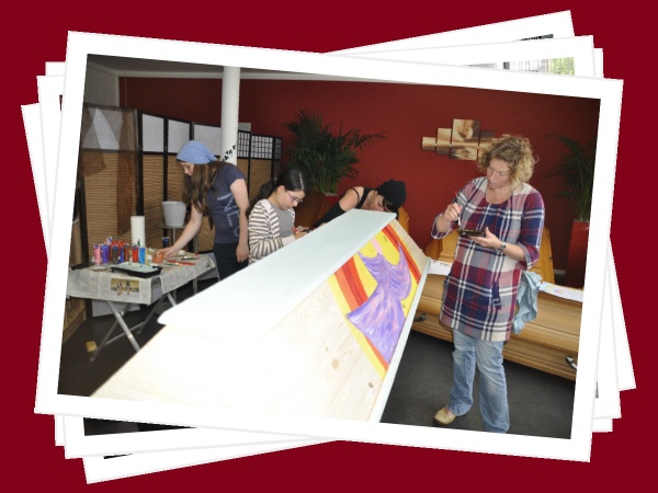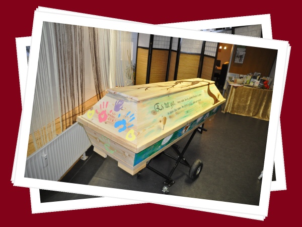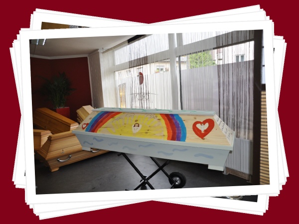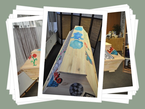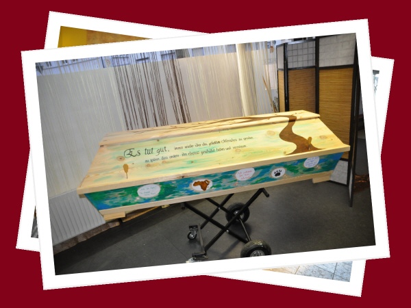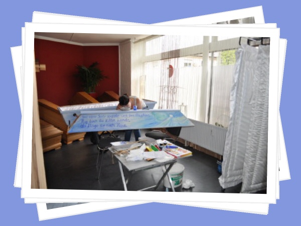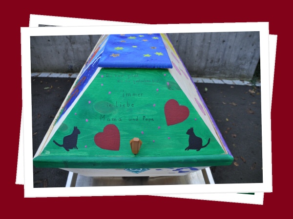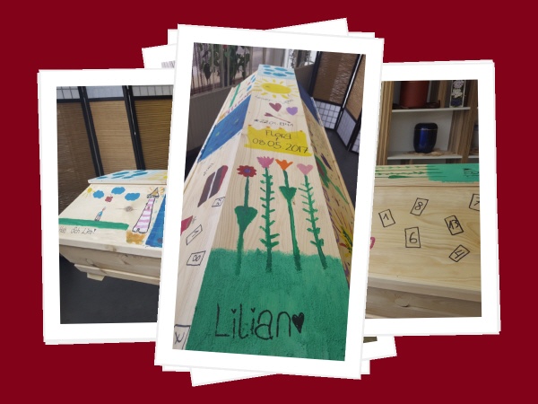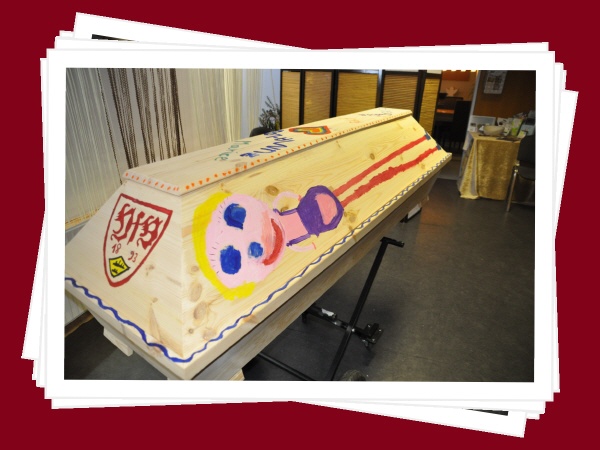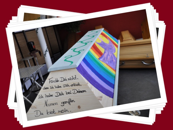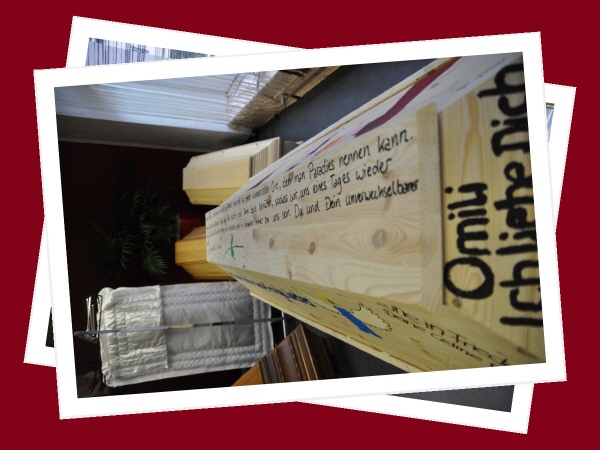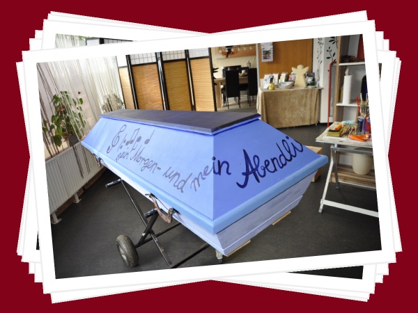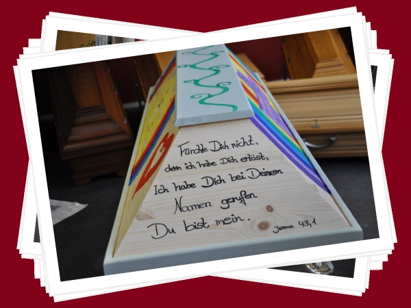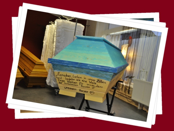 Trauerarbeit und Trauerverarbeitung ist eines unserer großen Hauptaugenmerke. Um nach einem schmerzhaften Verlust nicht in die Schockstarre zu verfallen und direkt in die Trauerverarbeitung zu kommen, bieten wir bei uns die Sargbemalung an.